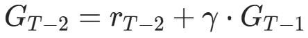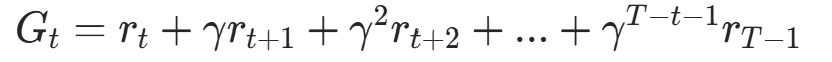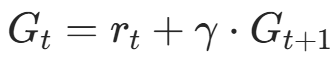 ,t:第n回合t步开始到回合结束的累计折扣回报(代码中G),计算式为: