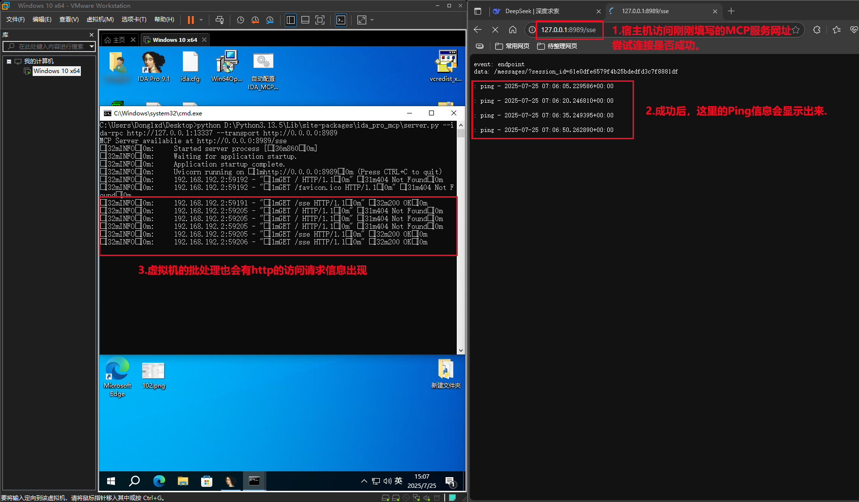 10. 如果不能访问MCP服务器,请用浏览器访问下MCP服务网址,看看虚拟机中的批处理是否有返回相应出现。