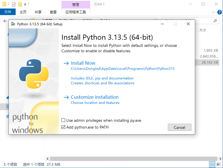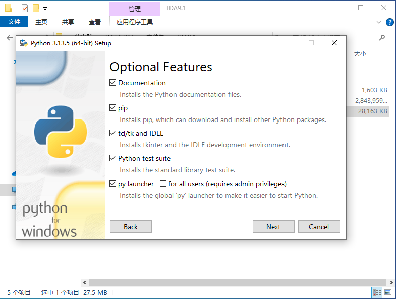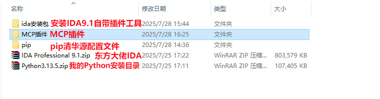 2. 我的安装包中"ida安装包"文件夹里有python3.13.5的官方安装包(第4项),大家可以直接安装,请大家注意,我这篇文章写了蛮久的,打包后的文件可能和截图有点不同,但是不影响大家使用,如有问题,请联系我更新。