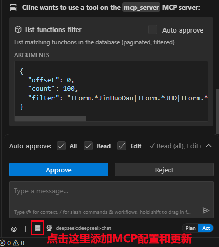 15.可以看到下图,deepseek已经根据我们的要求添加了过滤词来找到需要的函数,并且这个函数是我之前修改添加的新MCP函数。