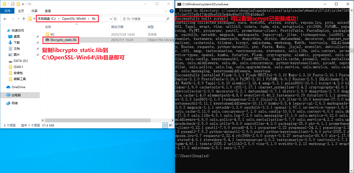 这个安装包我也提供给大家,在"IDA安装包"中的第七项"Win64OpenSSL-3_5_1.exe",运行安装时需要注意一点,安装目录需要和VS编译器的链接库路径相同才行,看如下高亮选中部分截图: