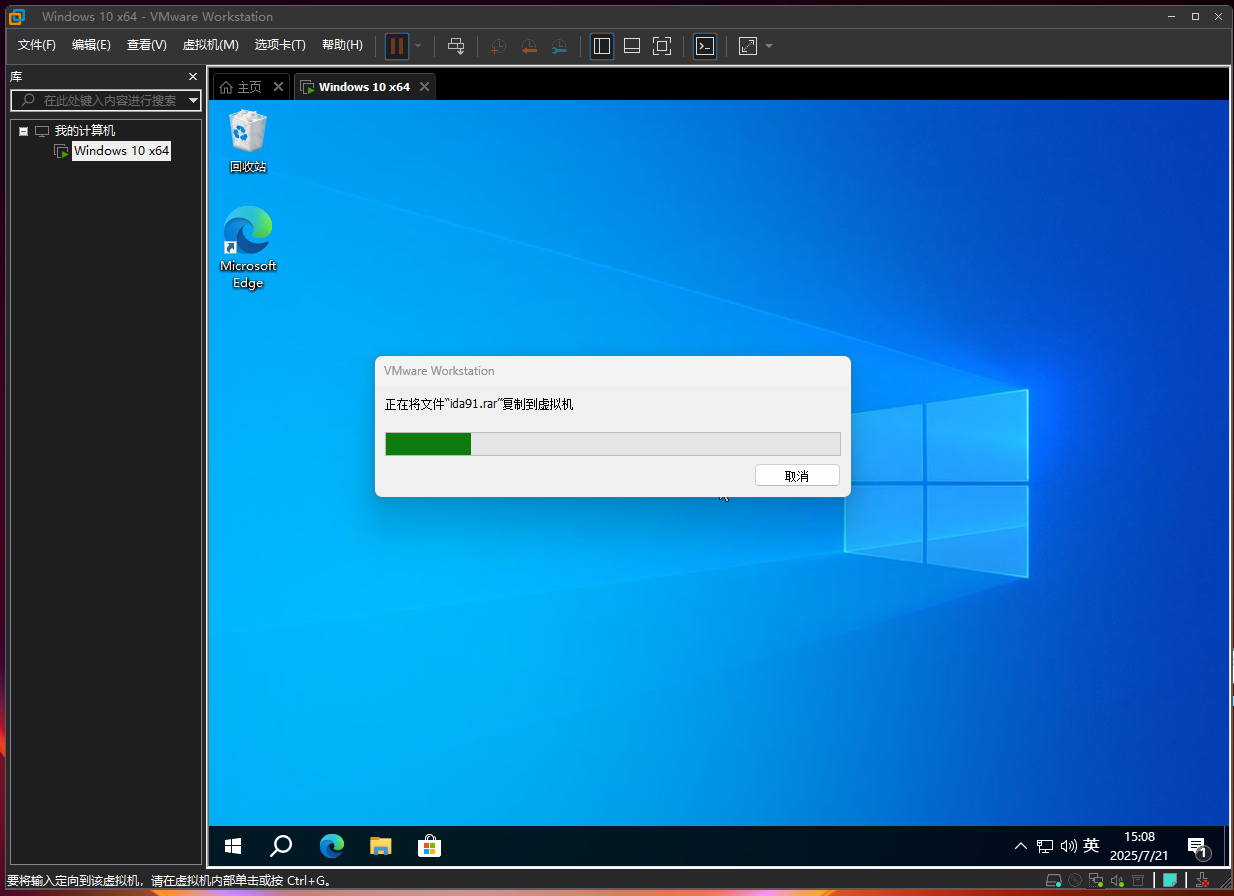 1. 把本文末的IDA91.rar压缩包(我根据东方大佬原始版本打包)复制到虚拟机中: