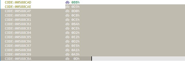 所以,我们全选588C94-588CD4的所有数据,按U键取消所有识别格式,然后按A键把这些数据识别成字符串。