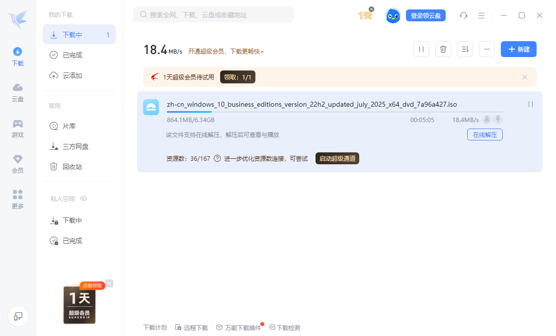 然后我们可以用迅雷快速下载,我没有用迅雷VIP,普通下载还是蛮快的,如图: