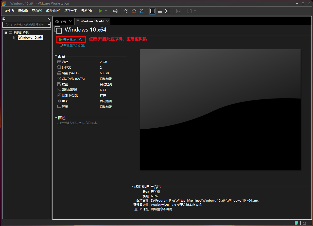 在下载镜像并安装VM软件之后,我们需要安装下WIN10虚拟机系统,如下: