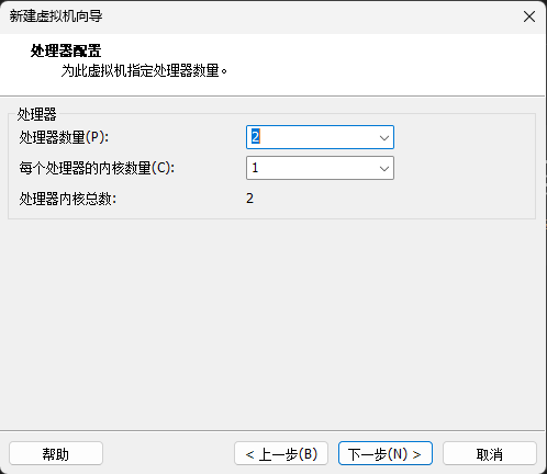 8.选择虚拟机CPU的数量和内核数,这个按自己的配置选择,只要能稳定运行WIN10就行,配置高的同学不一定要分配太多,最后点击下一步: