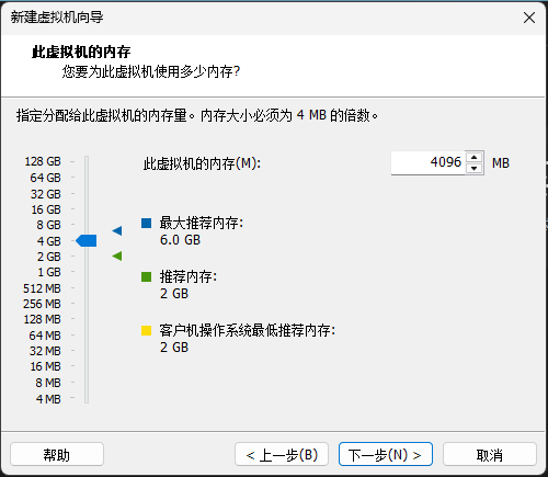 9.配置下虚拟机内存,这个按需设置,我设置的是4G,一般想流畅运行WIN10,可以设置成8-16G,根据你的宿主机内存总数来分配,虚拟机占用的内存会和宿主机叠加在一起,注意两者相加不要超过总物理内存即可,然后点击下一步: