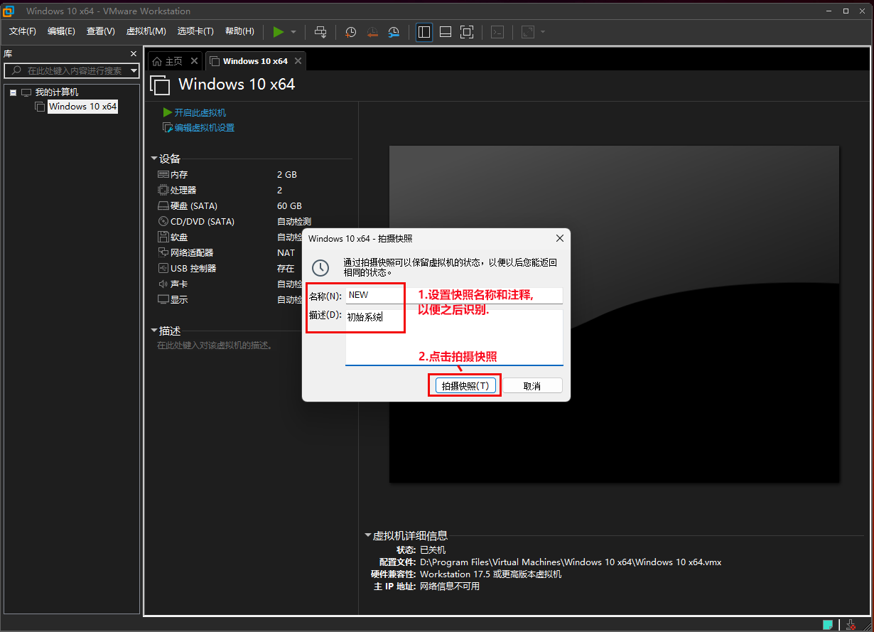 27.在此界面新建一个快照,可以给快照起个名称或注释,以便以后识别还原点: