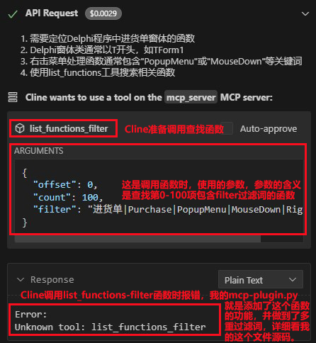 4.试用原始的MCP函数时,报错list_functions_filter函数缺失,如下图: