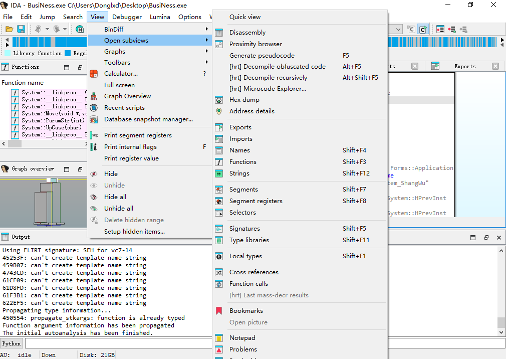 1.首先,我们加载下这个样本文件(BusiNess.exe),并等待IDA分析结束,如下图: