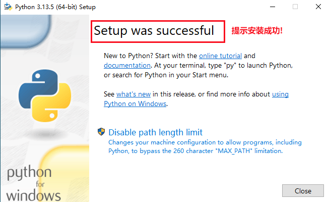 9. 如果pip安装没问题的话,就会如下图这样,安装成功的信息: