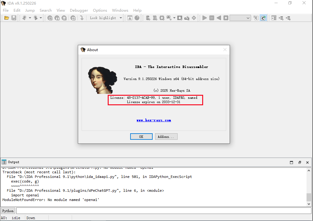 最新IDA8.3安装后需要做的一些完善工作(包括IDAPython报错、ChatGPT的模块安装、中文字符串的显示,各种问题解决方法合集)