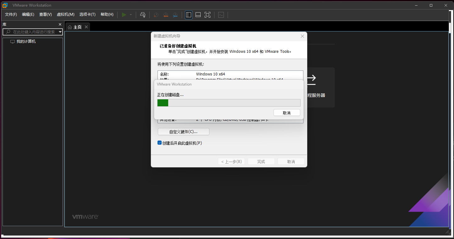 17. 点击上步后,会根据你的设置创建虚拟磁盘,耐心等待结束就行了,如图: