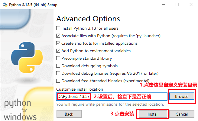 5. 自定义安装目录,我设置成D盘,注意路径最好不要设置成中文,可能安装不了。