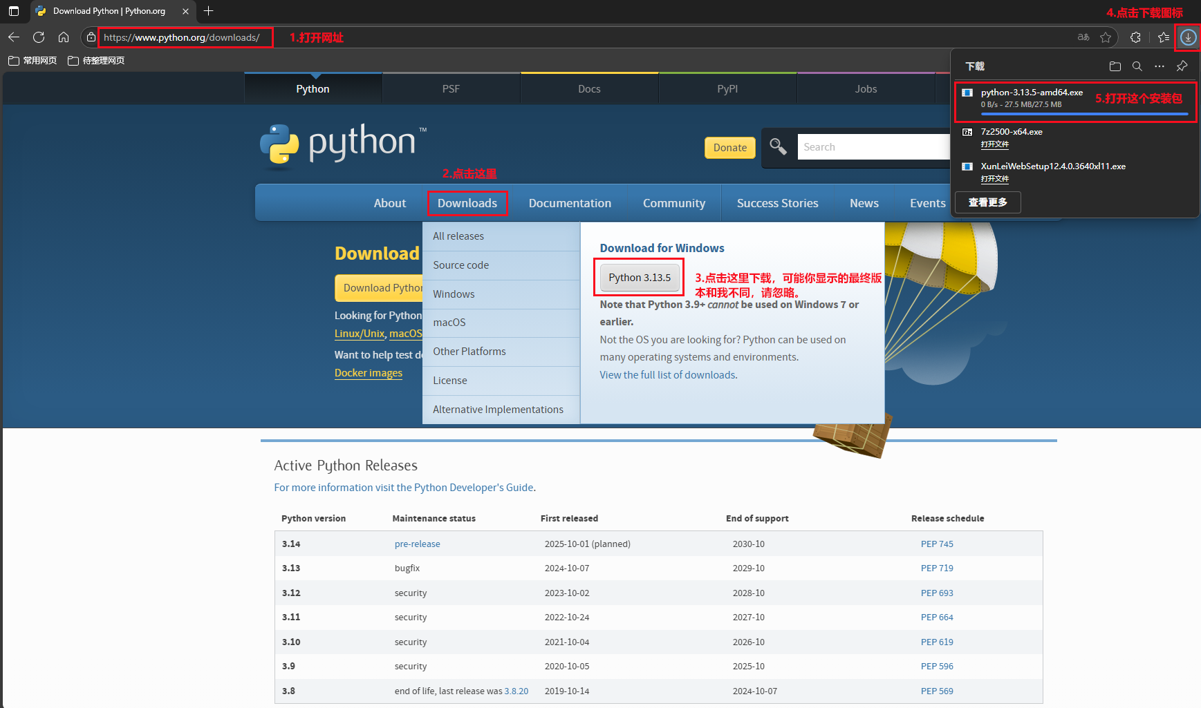 1.用浏览器打开Python官网下载最新版Python,我的截图可能已不是最新,请忽略,如图: