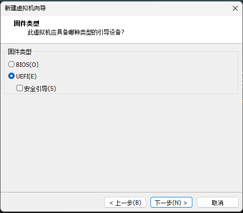 7.下面选择虚拟机的引导类型,因为是WIN10,我选的UEFI,如果想安全点,可以勾选安全引导,这和物理机上的原理是一样的,防止不安全的驱动加载,保护内核文件,我没选,然后点击下一步: