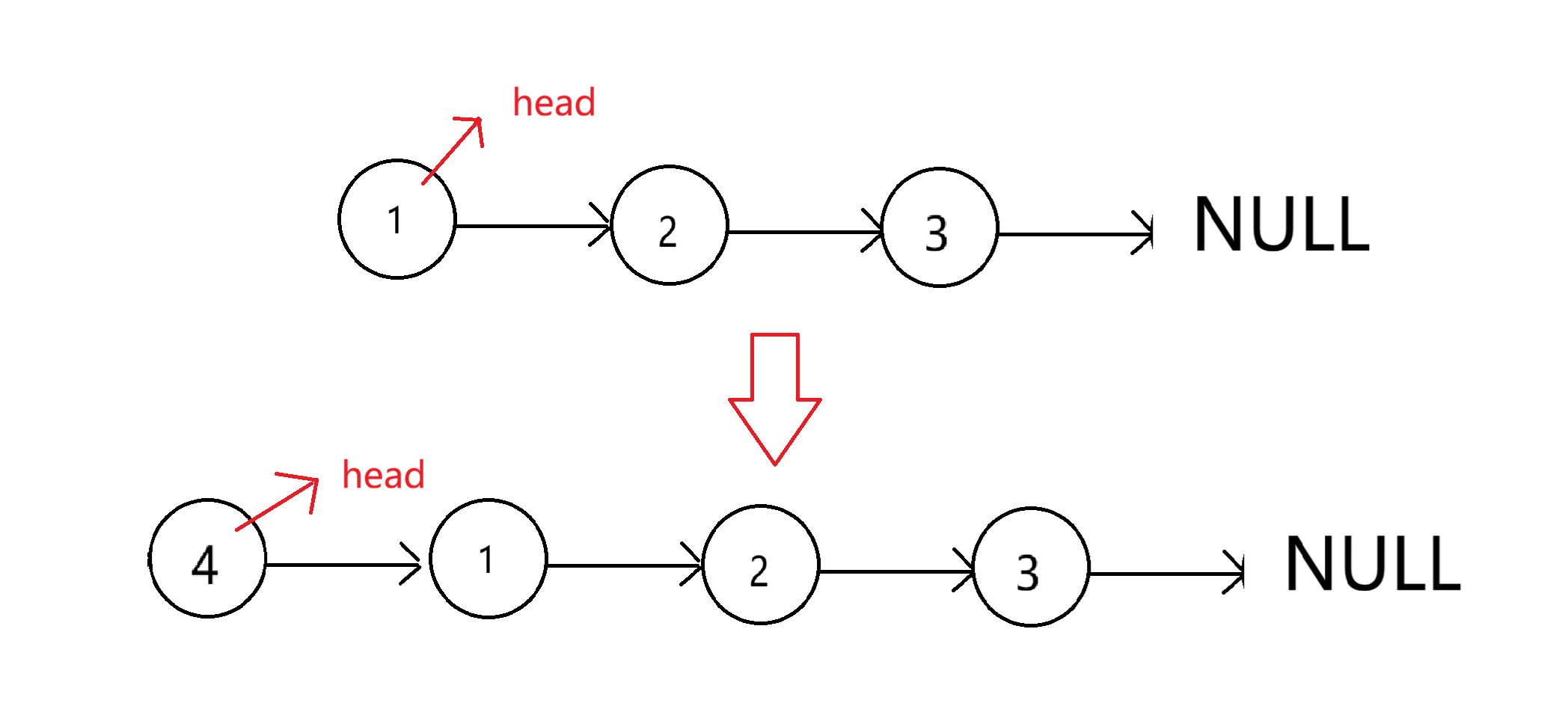 newnode->next = *pphead; //新节点插到原头节点的前面