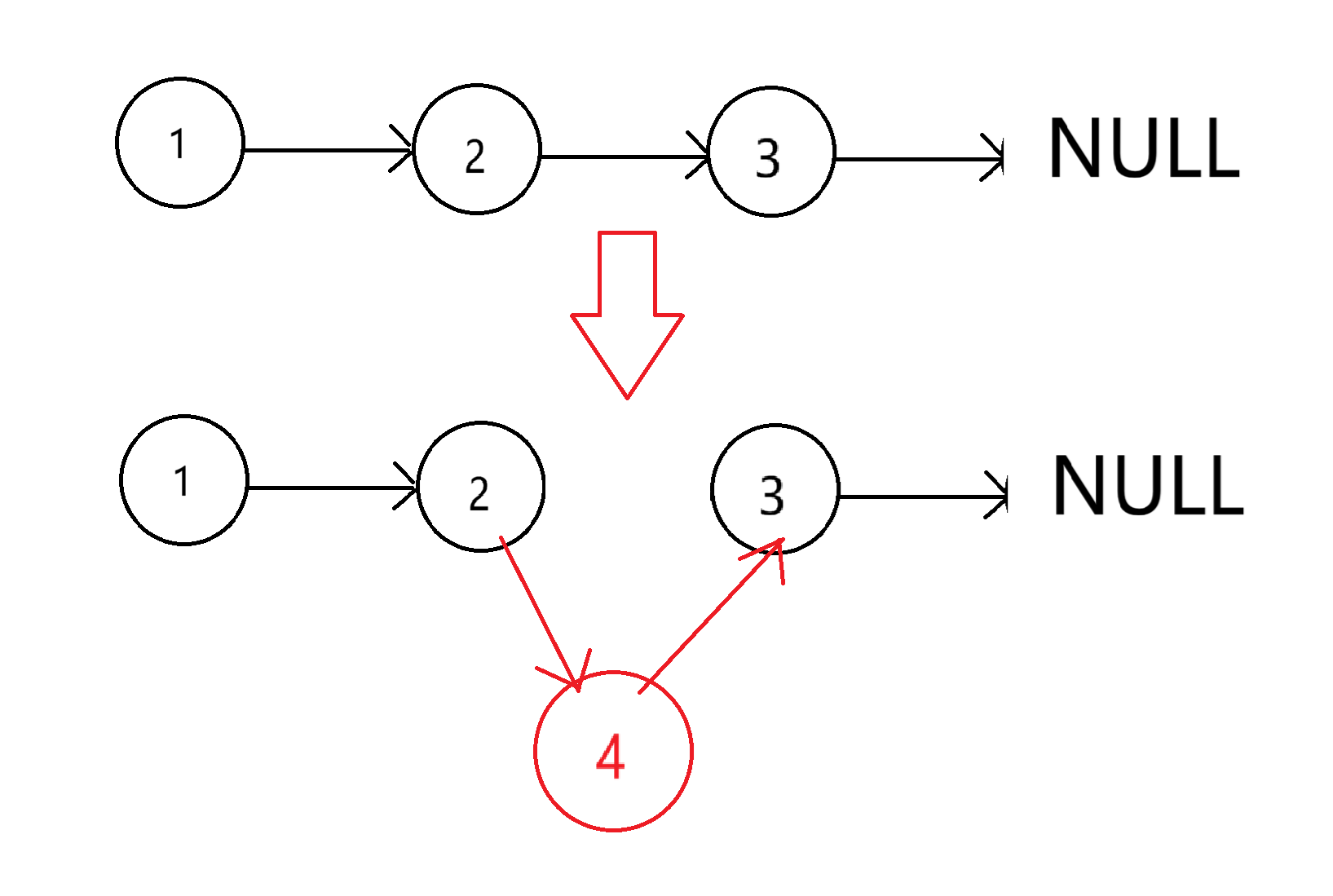 比如我们要在存有“2”数据的节点后面出入新节点: