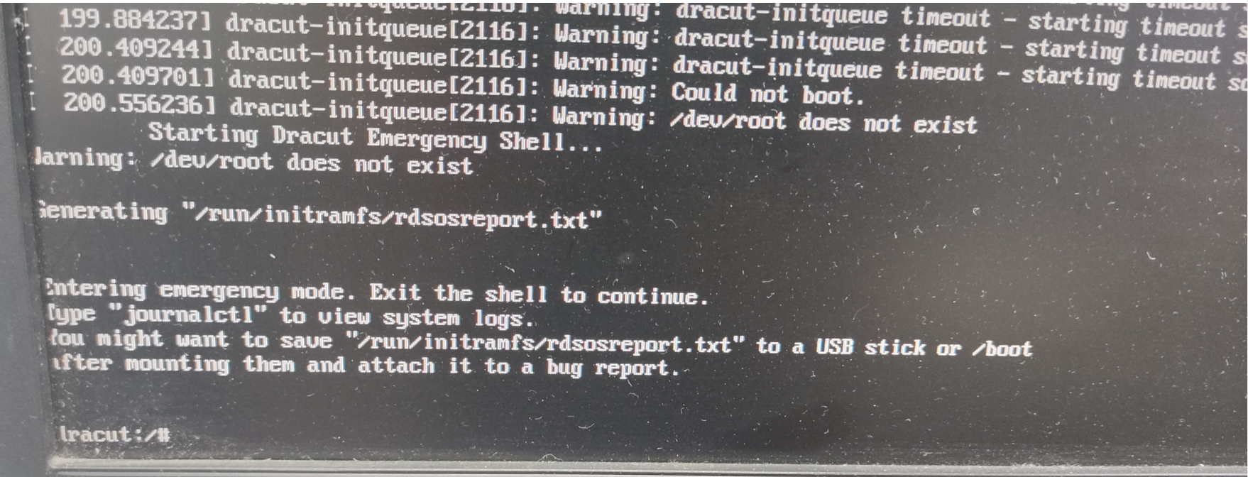 服务器使用U盘安装linux CentOS操作系统报错Warning:dracut-initqueue timeout-starting timeout scripts
