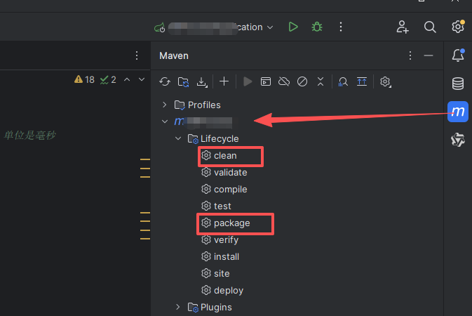 点击右侧maven,然后在Liftcycle下分别双击clean和package