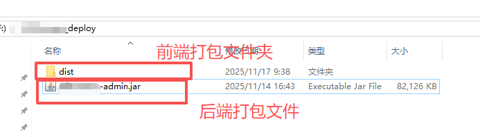 这里我方便查找,建了一个_deploy文件夹,将前后端打包文件都放在了这个路径下。