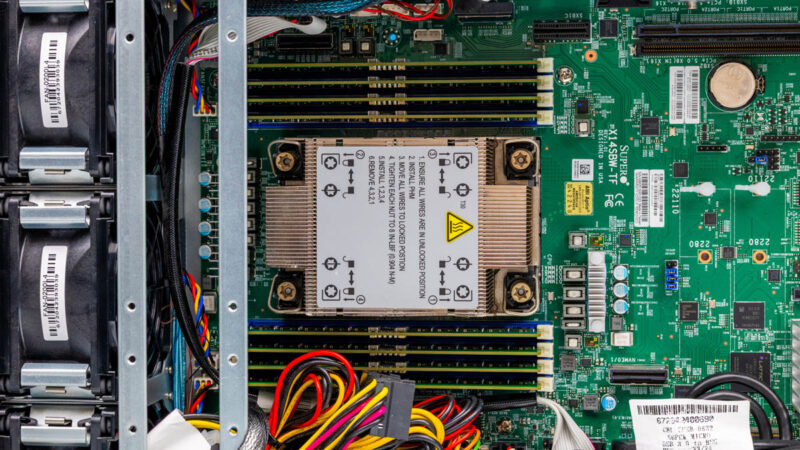 打开顶盖后,可以直观感受到这台服务器在空间利用上的高度集成。机箱内的散热风扇为热插拔设计,方便在不影响系统运行的情况下进行维护。