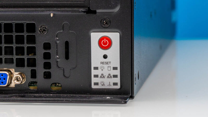 紧凑化的实现,很大程度上得益于其前置 I/O 架构。机身正面左侧集成冗余电源模块,并配备两个 2.5 英寸 NVMe SSD 热插拔硬盘位。相邻位置为两个 USB 3.0 Type-A 接口——在 E403 系列的部分型号中,这一位置仍为 USB 2.0,因此该机型在外设接入体验上有所提升。