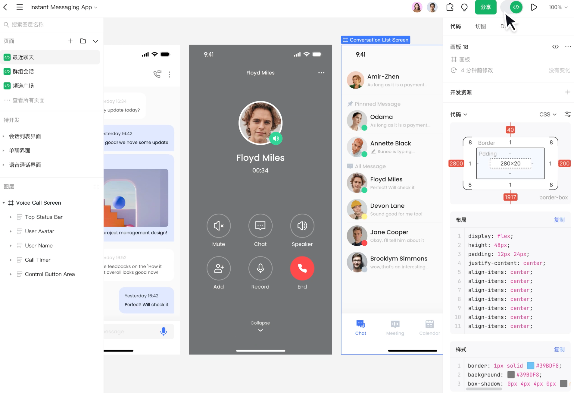 Figma和Pixso的逻辑是:设计即一切。设计师之间的协同效率非常高,规范、组件体系也很成熟。从设计出图到给开发交付代码,链路也非常顺滑。对设计团队来说,这是非常理想的工作环境。