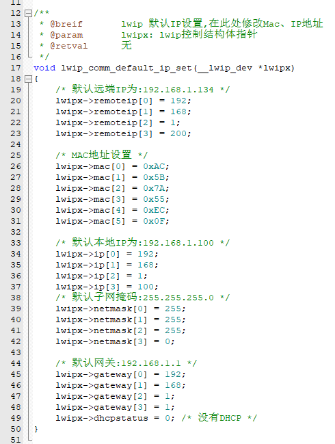 lwip_comm_default_ip_set(&g_lwipdev); /* 设置默认IP等信息 */