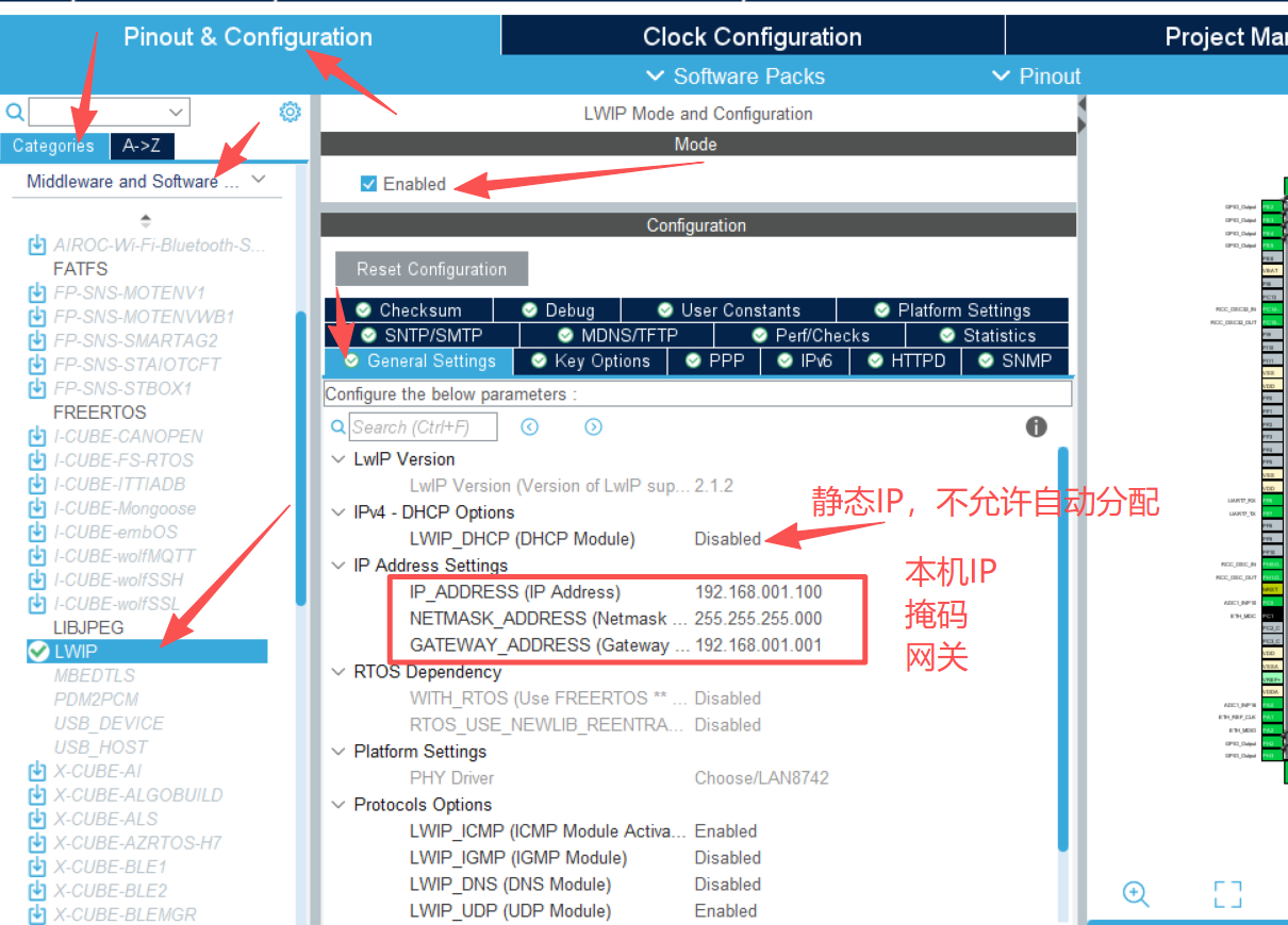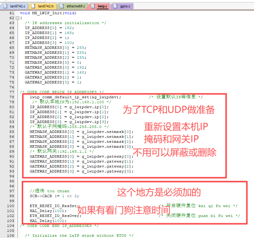 8.3.2、后配置本机IP地址、网关、掩码、MAC地址暂时还是使用CubeMx生成的,这里的Max地址不作数。