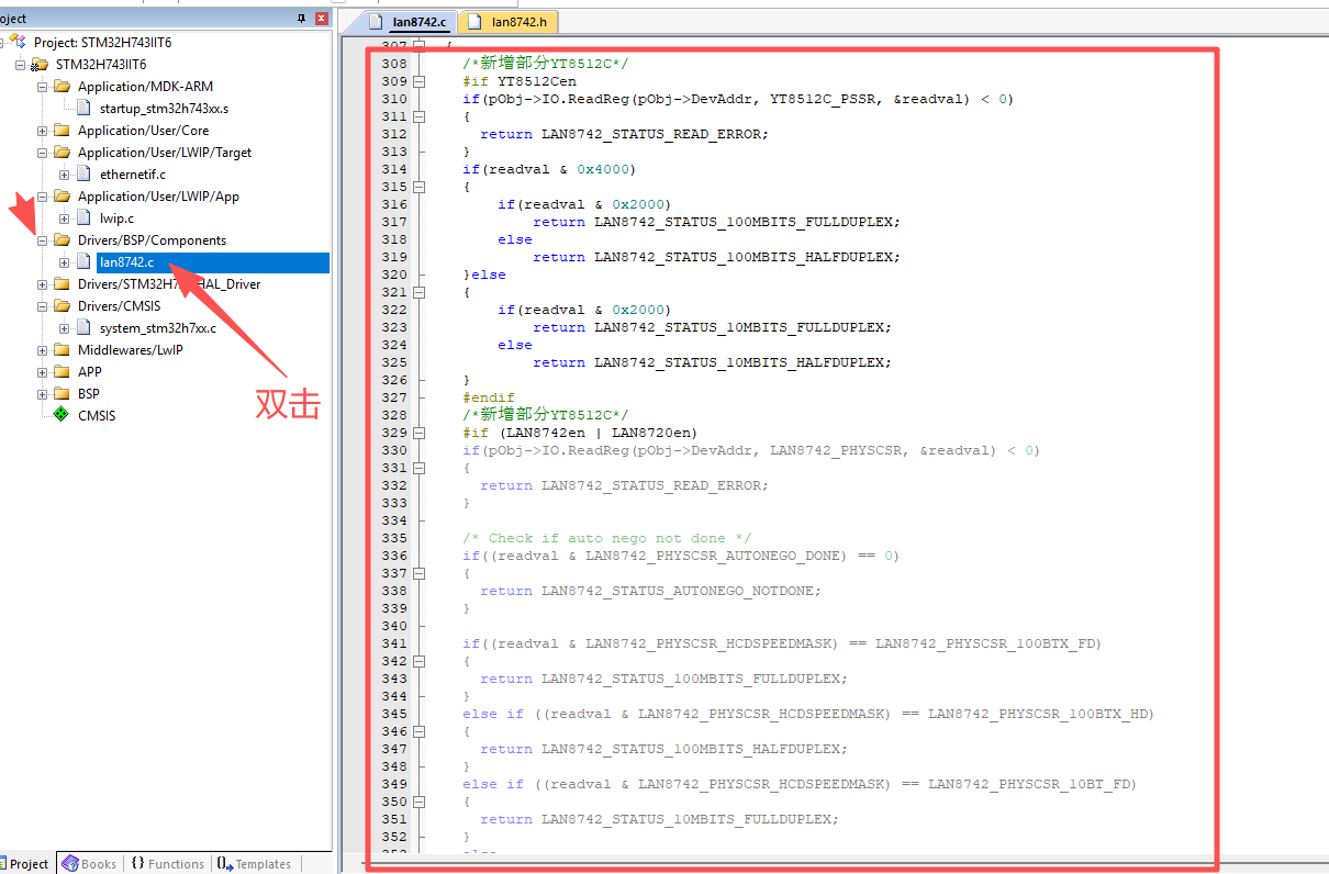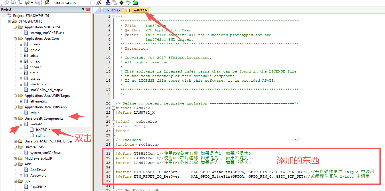 6.1、打开文件“lan8742.h”