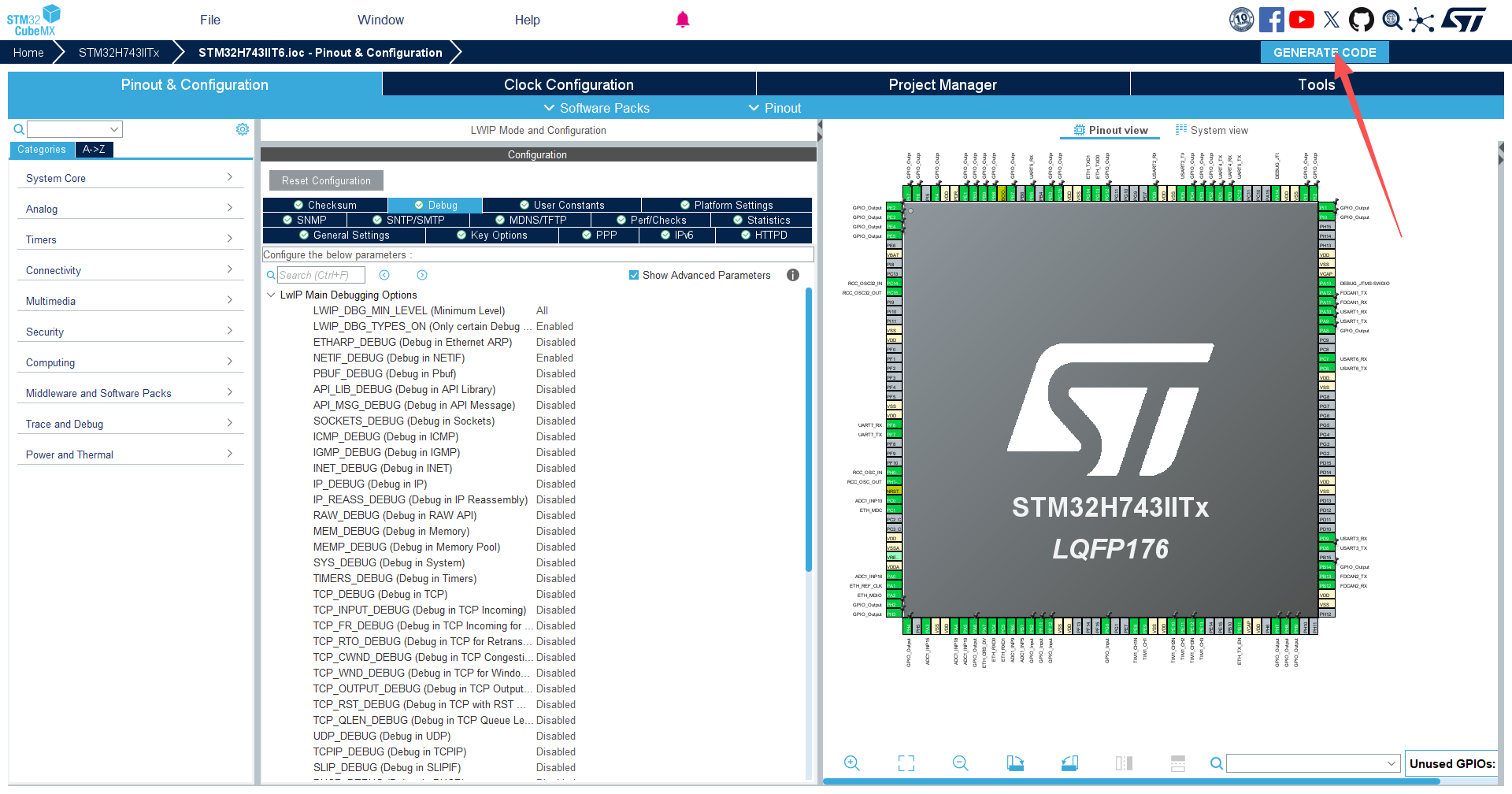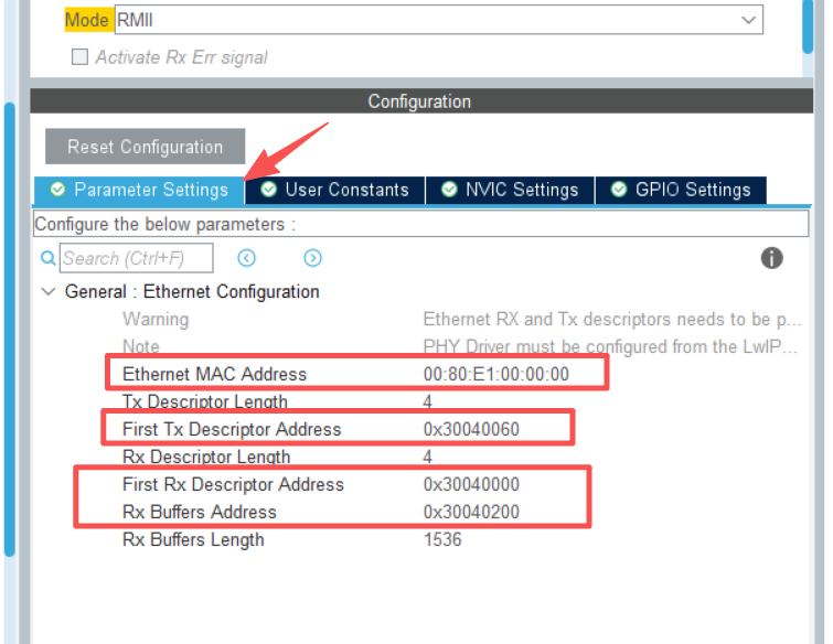 4.2、由于当前版本的CubeMx只有LAN8742的phy芯片,所以先按照这个配置,生成代码后做修改