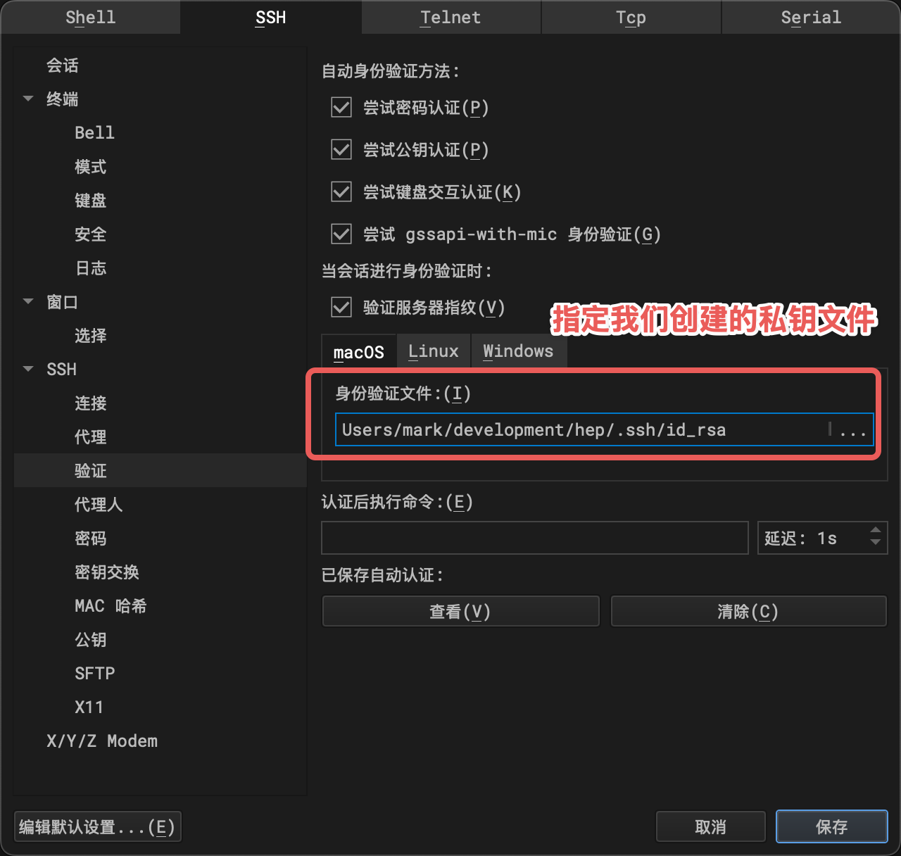 - 在堡垒机中指定创建好的私钥