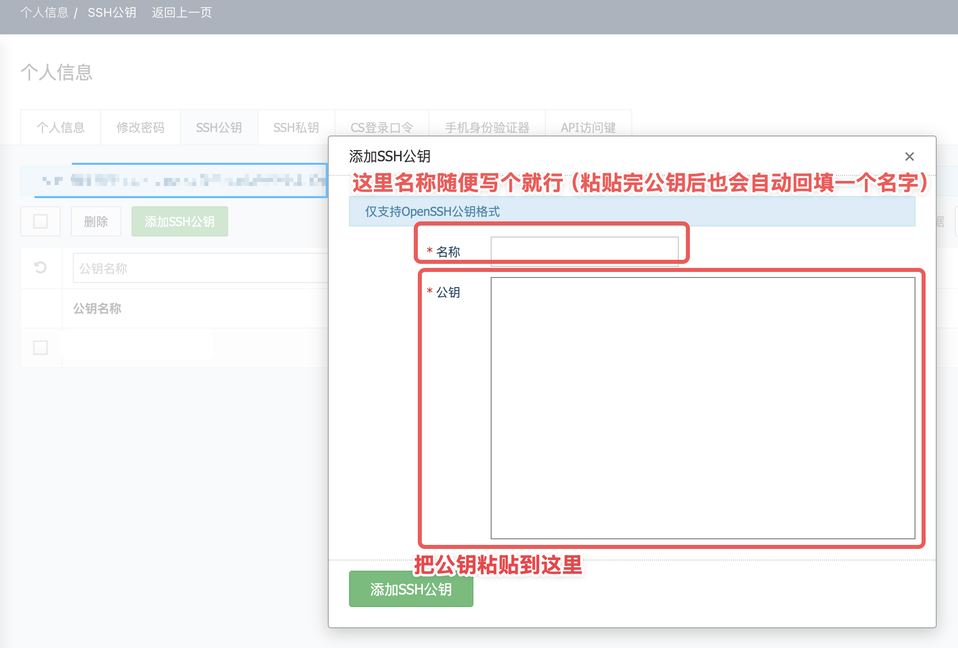 - 在堡垒机中指定创建好的公钥