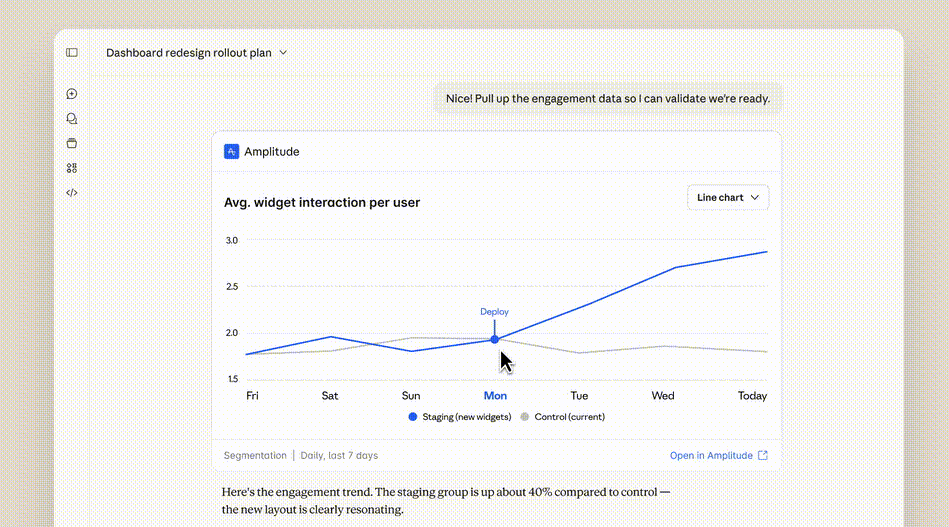 她没有打开Figma,也没有登录Asana,只是在对话框里输入:“Claude,帮我们准备下周二‘仪表盘改版’的评审会。”