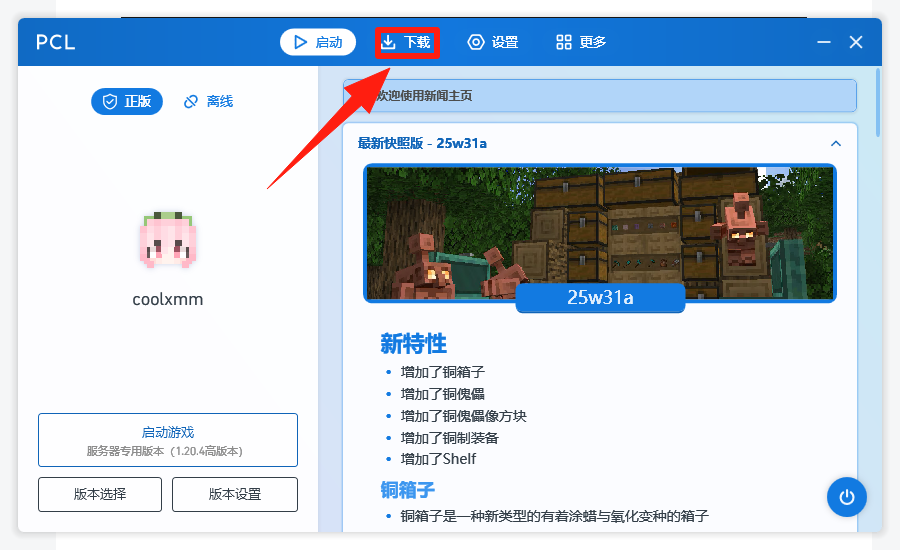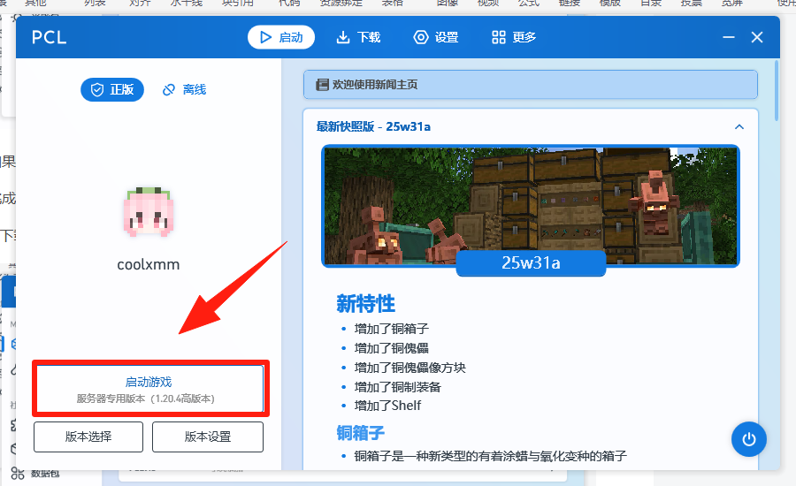 四、进入服务器(以PCL2为例)