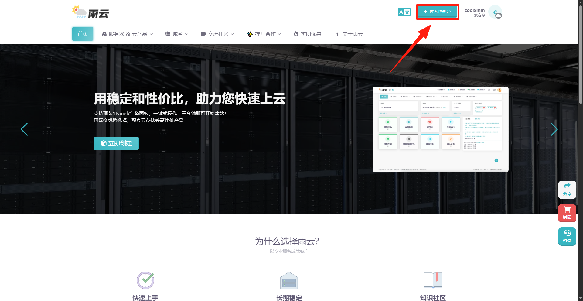 1.点击右上角“进入控制台”
