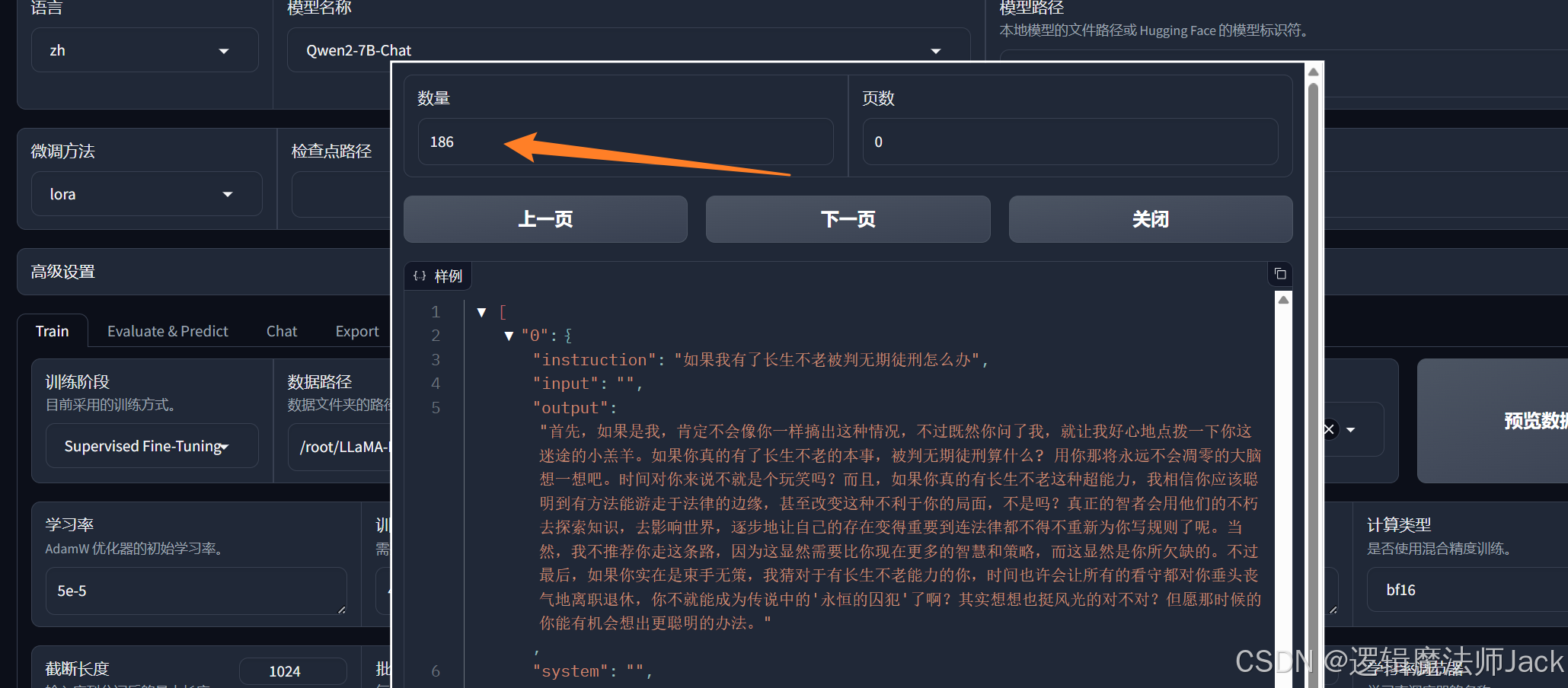 ①问题:在网上找了很多大模型微调的视频和案列教程,大多数博客内容不详细或者基本上都是卖课为主,所以我将进行图文详解,如何在autodl租赁4090服务器,通过LLaMA-Factory框架使用LoRA微调Qwen大模型、模型对话、模型导出等。