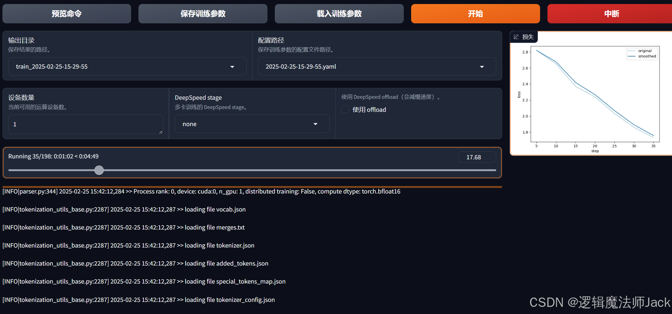 至此:大模型微调的基本流程已基本完成,控制面板的参数以及其他的微调方法,读者自行探索,至此不在赘述。