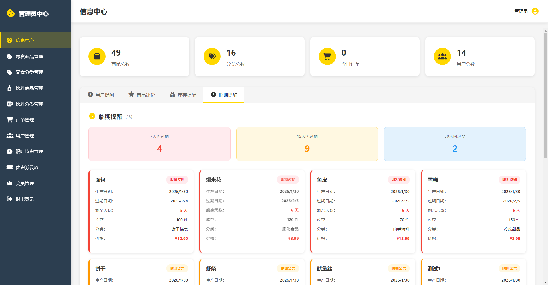 - 过期商品提醒会显示即将过期的商品