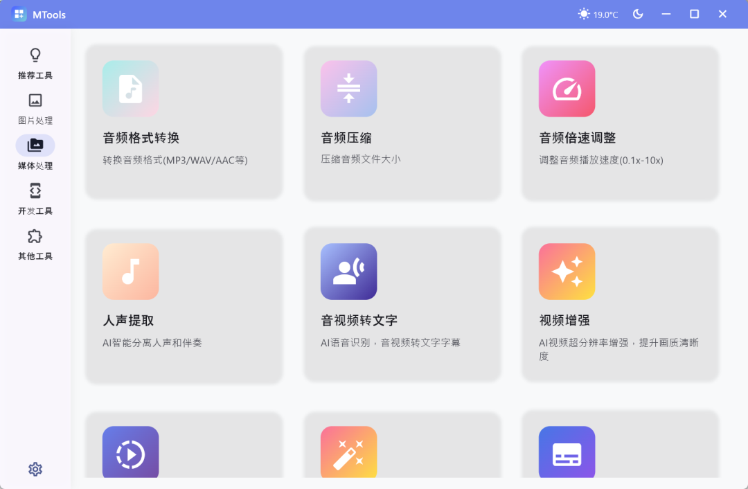 媒体处理:好多做视频的小伙伴都有遇到需要音视频处理工具,像格式转换、压缩、倍速调整、人声提取、语音转文字、视频增强等。