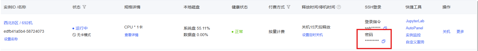 得到以上弹窗后,回到我的autodl界面,复制以下内容: