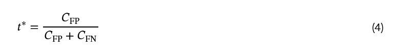 给定成本模型 C_FN 和 C_FP,我们得到一个决策感知的阈值: