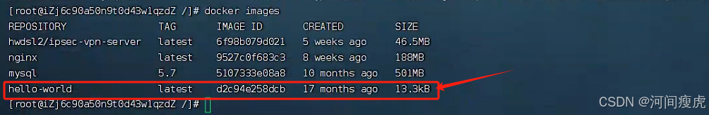 等待代码执行之后,使用docker命令查看镜像是否拉取成功: