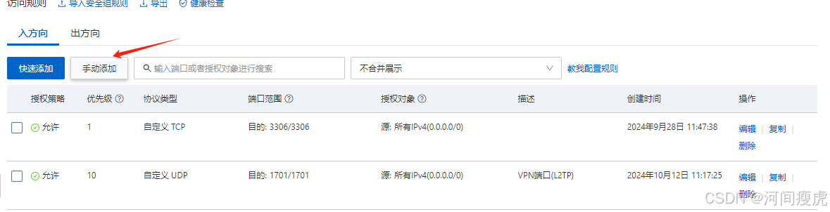 点击后选择手动添加添加如下三个端口即可