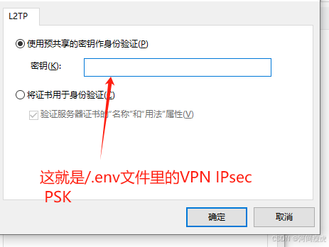 IPsec 共享密钥(预共享密钥):这个在 .env 文件中配置的 VPN_IPSEC_PSK。