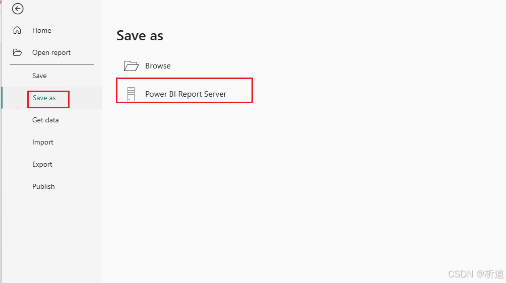 首先打开我们的Power BI desktop RS,然后新建一个报表,然后我们点击左上角文件: