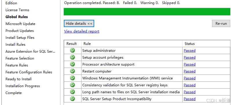 License Terms勾选就好,然后Global Rules这里status要没有fail