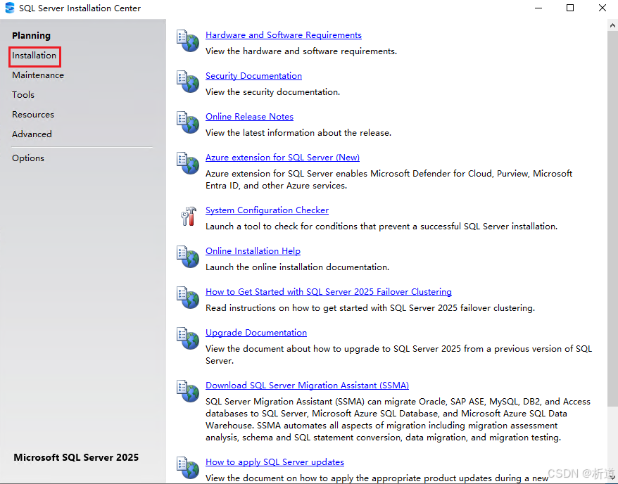 运行SQL2025 这个安装包。可以选择Basic,或者Custom这两种部署方式。这里以Custom为例子: