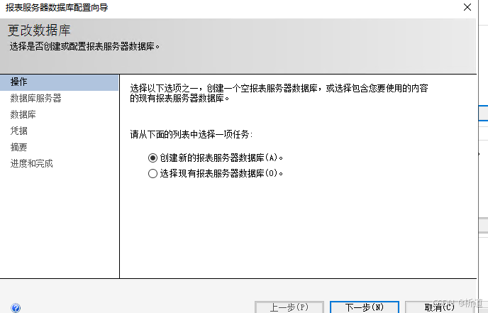 这里选择创建新的报表服务器数据库,如果是迁移以前的报表服务器或者升级的化选择第二个:
